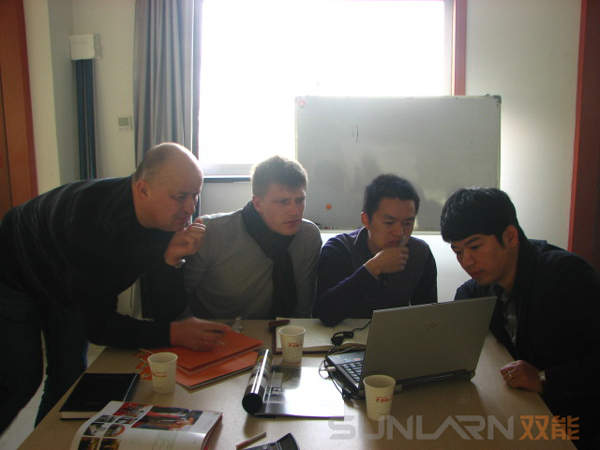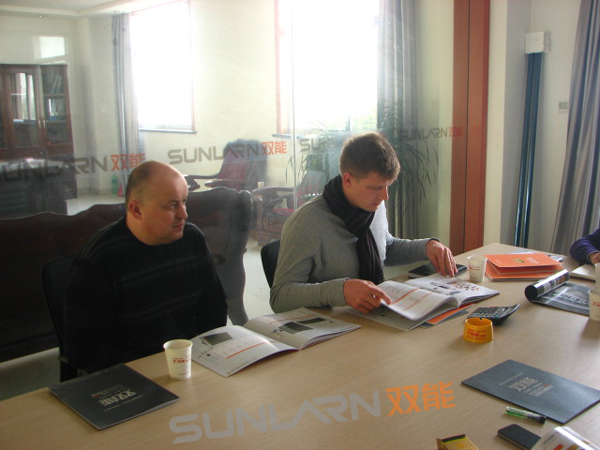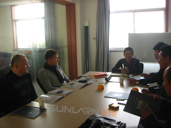 經(jīng)過業(yè)內(nèi)排行搜索、行業(yè)專家推薦以及周圍朋友介紹,Herry和Martin來到了雙能太陽能。通過參觀雙能生產(chǎn)車間、形象展示廳以及與雙能常務(wù)副總的溝通,Herry和Martin對雙能的實力有了深入地了解。Herry表示,“雙能太陽能就是我心目中理想的合作伙伴。”雙方洽談很愉快,簽訂了初步合作協(xié)議,隨即雙方就目前的項目進行了技術(shù)方案的探討。