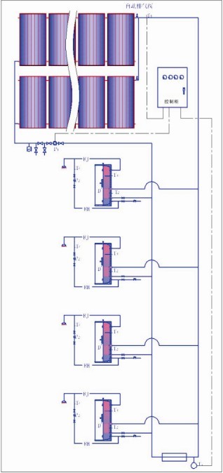 2、太陽能主循環(huán)系統(tǒng)控制與每戶控制分離,用戶通過戶內(nèi)控制面板及連接在管道上的閥門操作,將集熱器收集的熱量平均傳遞給每戶獨(dú)立的水箱,并且通過邏輯設(shè)定實(shí)現(xiàn)每戶熱量平均分配。