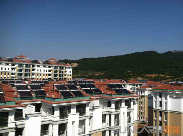 日前,由雙能公司設(shè)計(jì)施工的湖州楊家埠民和花園太陽能熱水系統(tǒng)已順利竣工。湖州楊家埠民和花園為政府安置房項(xiàng)目,共976套,雙能公司從激烈的競標(biāo)角逐中拔得頭籌。該項(xiàng)目采用的是較為先進(jìn)的集中集熱分戶供熱系統(tǒng),施工周期為4個(gè)月。