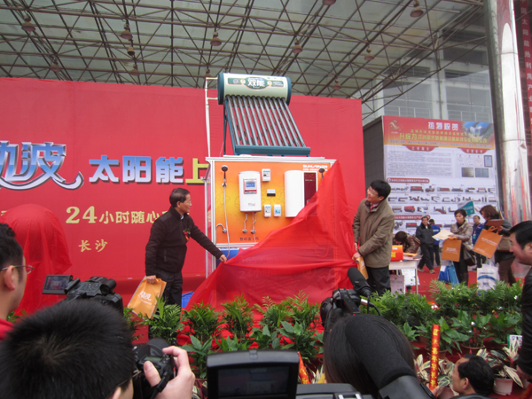 3月16日,第九屆中國國際(長沙)太陽能品牌產品博覽會暨第六屆中國國際(長沙)太陽能貿易洽談博覽會召開之際,由江蘇雙能太陽能有限公司主辦的全球第一套智動波太陽能上市儀式隆重舉行。中國中國節能協會太陽能專業委員會秘書長霍志臣、全國太陽能標準化技術委員會秘書長賈鐵鷹、國家太陽能熱水器質量監督檢驗中心(北京)副主任何濤、國家太陽能熱水器質量監督檢驗中心(武漢)總工張曉黎、陳欣部長、江蘇雙能太陽能有限公司常務副總賁道發、以及湖南衛視、中國科技日報、中國能源報、人民網、新浪網、中國房地產報、《中國太陽能產業資訊》等幾十家媒體,共同見證了代表著太陽能行業“再節能”集成技術領域前沿成果的“智動波太陽能”上市儀式及現場演示體驗活動,并為智動波太陽能揭幕、按儀式啟動球。